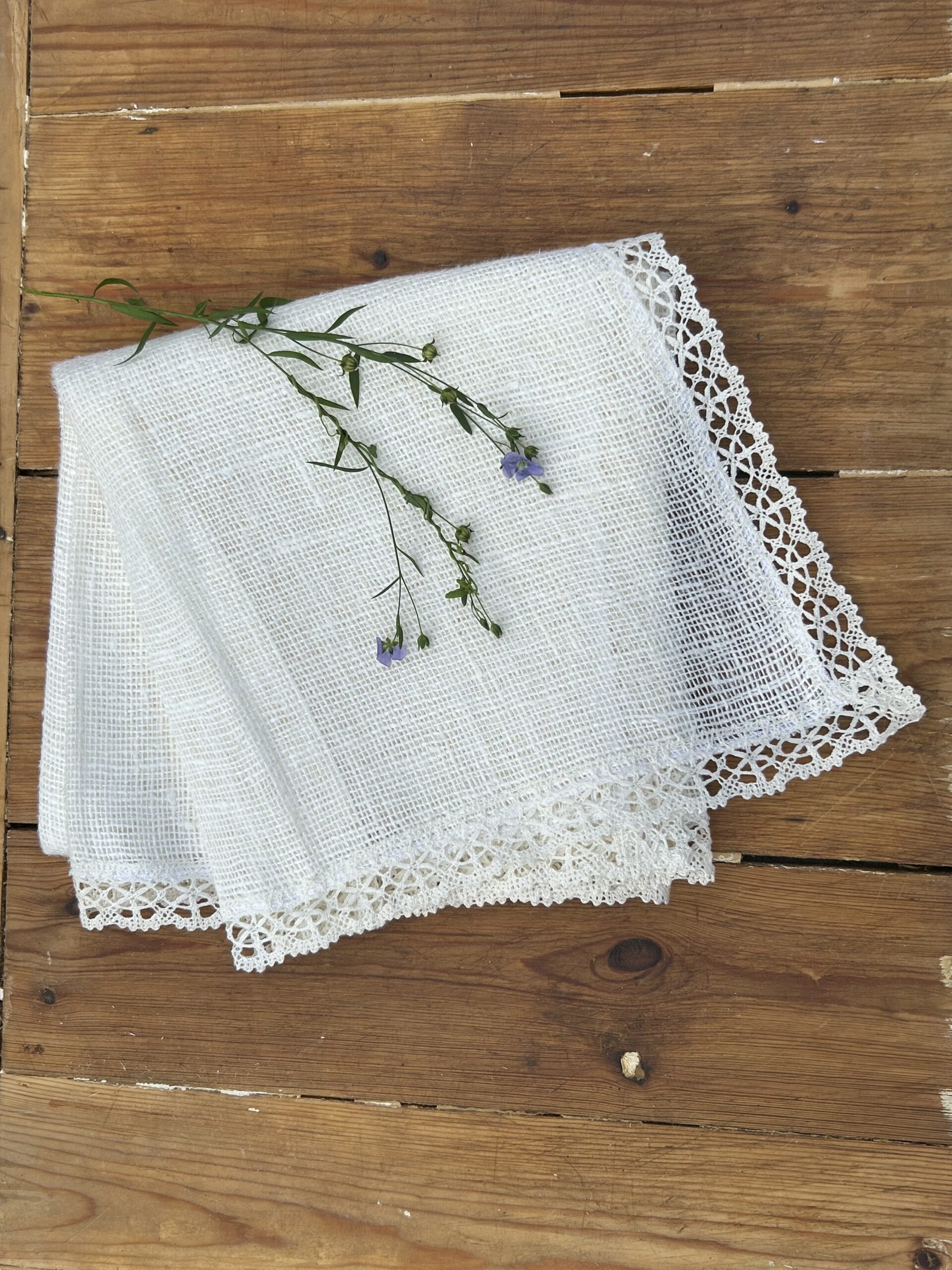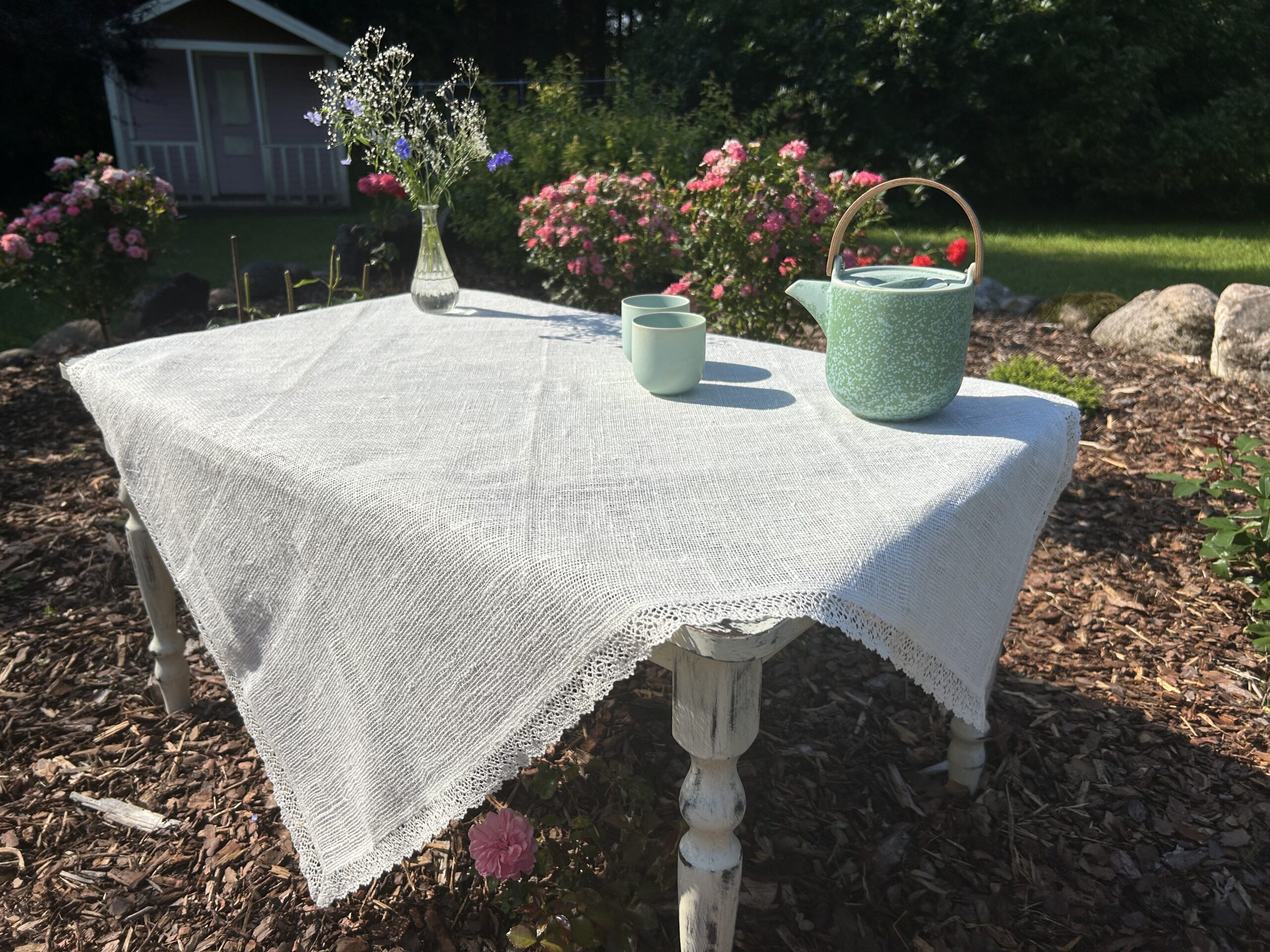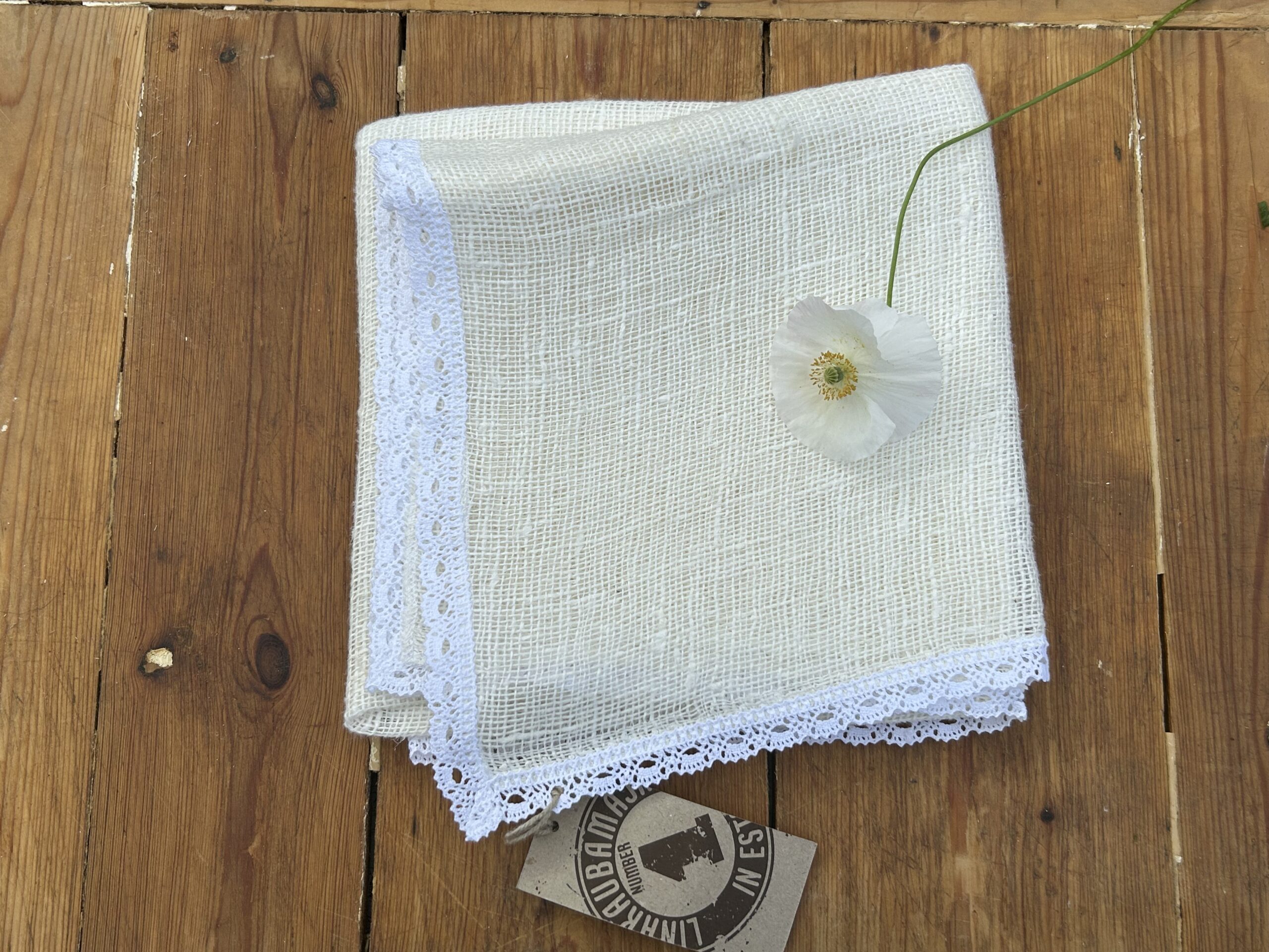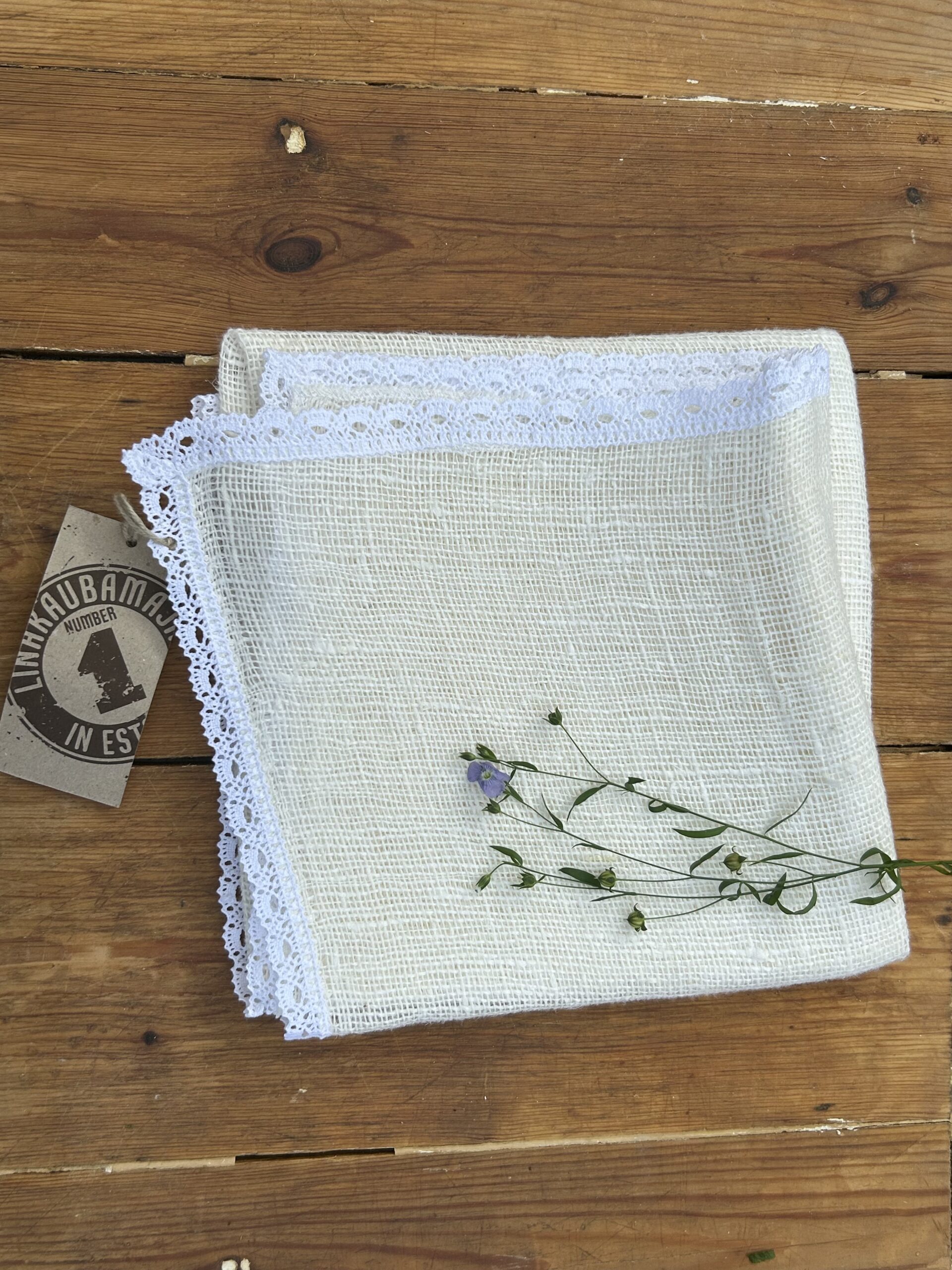 See ruudukujuline linane laudlina ühendab maalähedase lihtsuse ja ajatult romantilise joone. Naturaalne valge kotiriie mõjub soojalt ja koduselt, samas kui serva kaunistav linane pits lisab pehmust ja pidulikkust. Linikute pitsid varieeruvad.